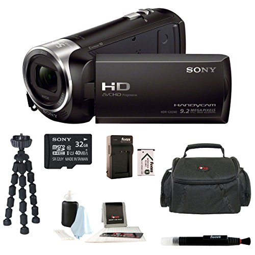 Sony HDR-CX240 HDRCX240B HDRCX240/B Full HD Handycam Camcorder + Sony 32GB Class 10 Micro SDHC R40 Memory Card + Wasabi Power Battery + Soft Carry Case + Accessory Kit description